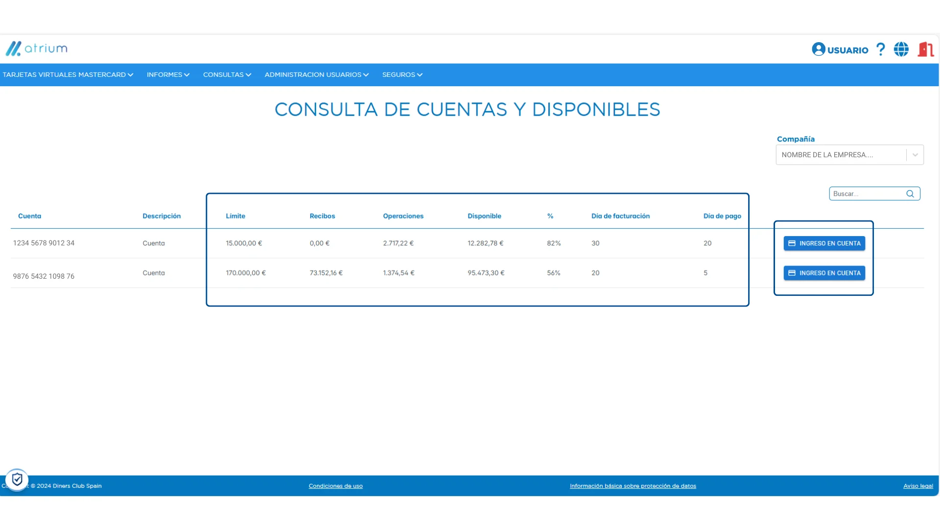 - Todo su contenido se integra en la sección «Consultas», situado a continuación de Cuentas y Disponibles.